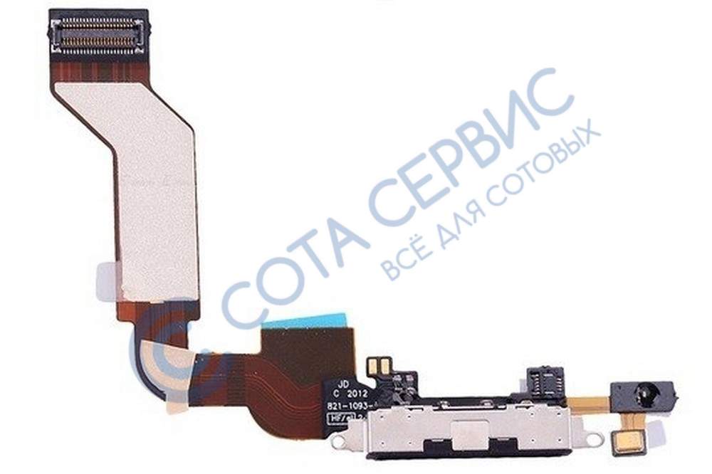 Шлейф для Apple iPhone 4s с разъемом зарядки (системным) и микрофоном 821-1093-A черный