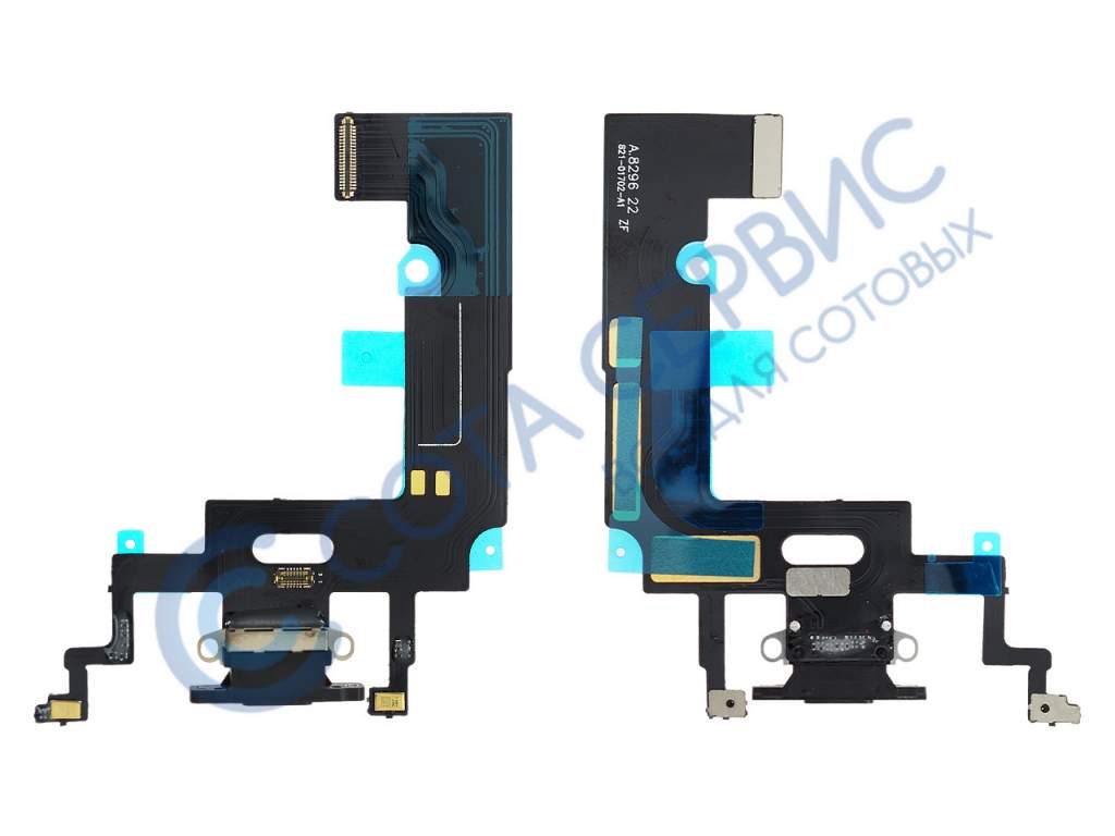 Шлейф для Apple iPhone XR нижний с разъемом зарядки и микрофонами черный